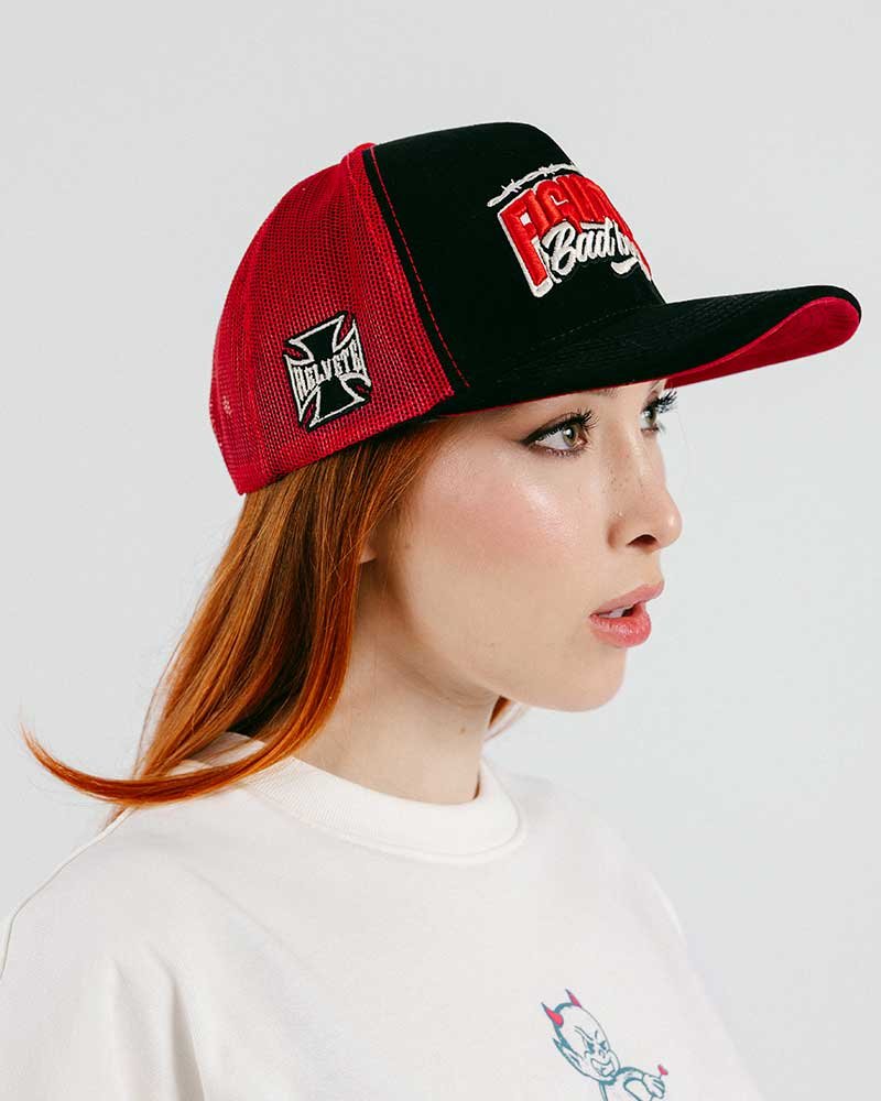 Gorra 5 paneles estructurada, contramarcada y visera precurvada, ajustable con sistema de cierre de correa plástica. Bordado de alto relieve en la parte frontal y bordado plano en la parte de atrás.