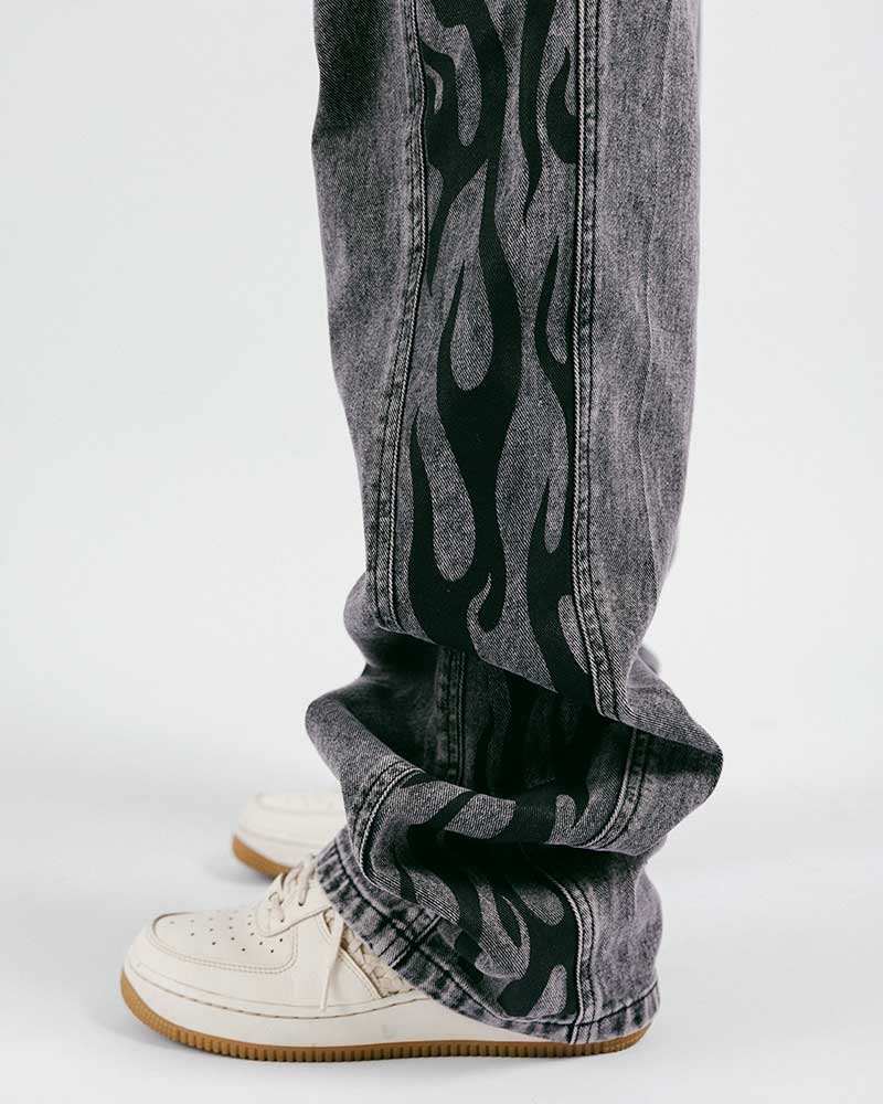 Jean tiro medio alto unisex en tela 100% algodón rígido de 295 gr bota larga